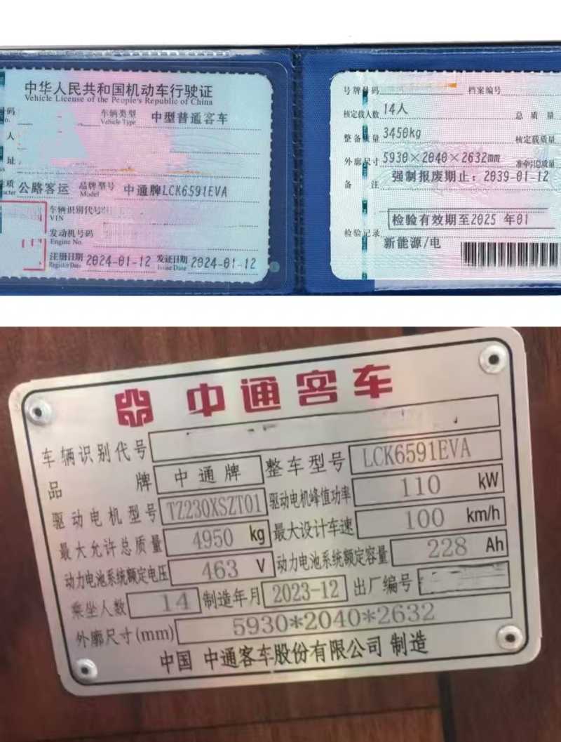 | 客车品牌 | 中通客车 | 上牌时间 | 2024-01-16 |
