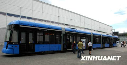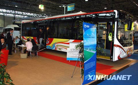 6月11日,中国生产的大型客车在奥地利首都维也纳举行的世界公交展上展出