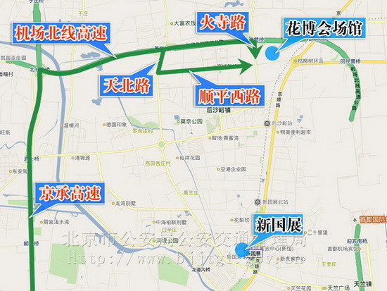 (一)由京承高速路经机场北线高速路、火寺路出口、火寺路;或由机场北线高速路天北路出口经天北路、顺平西路至花博会场馆自驾车停车场。