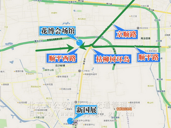 (四)由顺义、平谷、怀柔、密云前往的车辆,可分别由顺平路、京密路经枯柳树环岛、顺平西路至花博会场馆自驾车停车场。