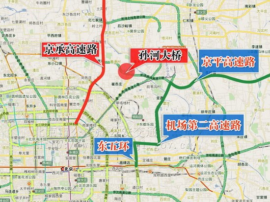 (三)由京密路方向出京的车辆,可经东五环路、机场第二高速路、京平高速路至顺义、平谷绕行。