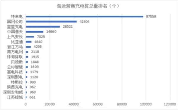 在2017年12月2日国家能源局公布的数据上,特来电的公共充电桩97559个,位列全国第一。