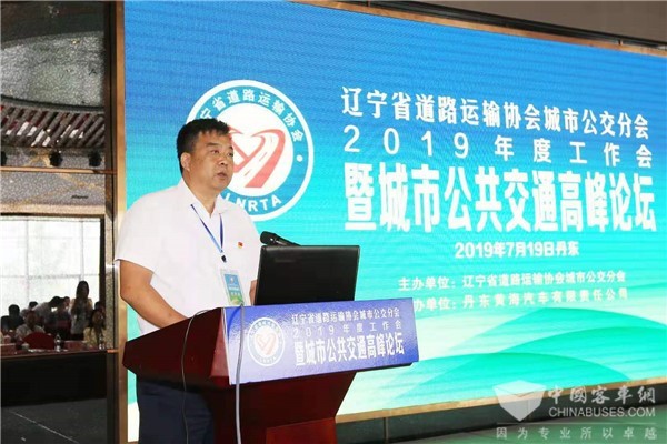 2019年7月19日,由辽宁省道路运输协会城市公交分会主办,丹东黄海汽车有限责任公司协办的辽宁省道路运输协会城市公交分会2019年工作会暨城市公共交通高峰论坛在辽宁丹东召开。辽宁省14个地级市公交企业领导、省政府及主管部门领导、城市公共交通智库专家等百余人齐聚丹东,围绕新能源客车推广应用现状、补贴政策解读、常规公交创新发展路径等议题开展讨论,为辽宁省乃至全国交运企业运营管理贡献智慧。
