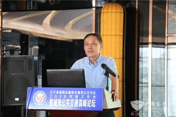 在政府及行业管部门的大力支持下,辽宁省在公共交通管理及新能源公交推广应用方面成绩显著。辽宁省道路运输服务中心副主任徐兵在致辞中表示:“近5年来,省公交优先发展战略得到了有效实施,智慧公交、绿色公交,组织多样化、基础设施建设都取得了突破。全省共有132家公交公司,车辆2.4万辆,新能源和清洁能源车超过1.5万辆,占比65%。全省公交线路2020条,站点500米覆盖率94%,年累计行驶里程约为14亿公里,年累计客运量42亿人次,吸纳了97万人就业。”