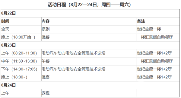“2019中国电动汽车动力电池安全管理技术论坛”与会指南