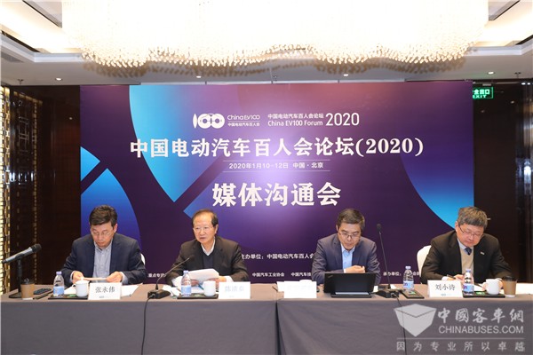2019年12月23日,中国电动汽车百人会论坛(2020)召开媒体沟通会,中国电动汽车百人会理事长陈清泰、中国电动汽车百人会副理事长欧阳明高、中国电动汽车百人会秘书长兼首席专家张永伟等相关领导就中国新能源汽车行业发展部分问题答记者问并介绍了中国电动汽车百人会论坛(2020)的具体议程。