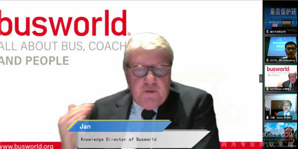 Jan Deman在致辞中表示,世界客车博览(Busworld)旨在打造一个全球范围内有关巴士与客车行业的知识库,提供整个行业所渴求的技术交流与政策探讨,世界客车博览(Busworld)与中国客车企业保持着良好的合作机制。当前,客车安全性受到广泛关注,希望通过此次网络论坛,大家共同交流,提出具有启发性的观点,促进全球客车安全性能的提升。