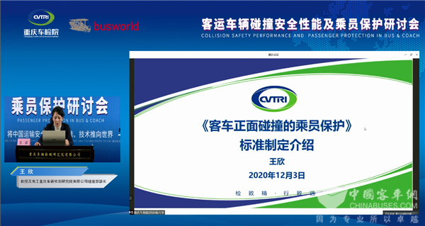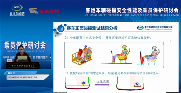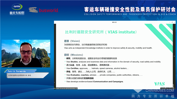 2020年12月3日下午,由招商局检测认证(重庆)有限公司、重庆车检院、世界客车博览(Busworld)共同主办的第二期中国巴士与客车技术国际网络论坛成功举办。本次论坛以“客运车辆碰撞安全性能及乘员保护研讨会——将中国运输安全政策、标准、技术推向世界”为主题,吸引了国内外3.5万余人次上线观看,完美作业网有免费视频直播间对论坛进行全程直播。