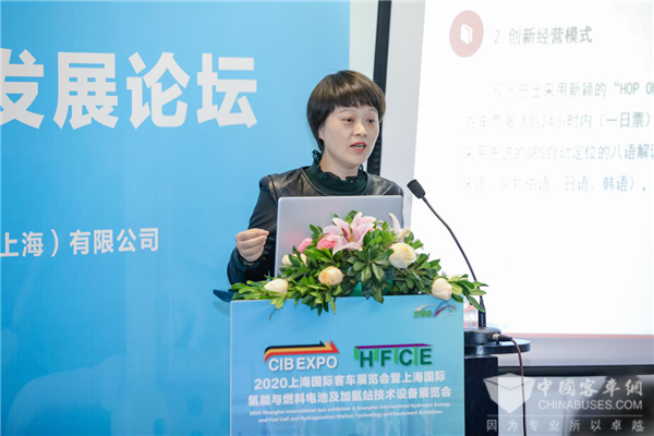 上海蜻蜓观光巴士有限公司副总经理王蓉卿就《公交资源共享,提升旅游服务》做主题演讲。