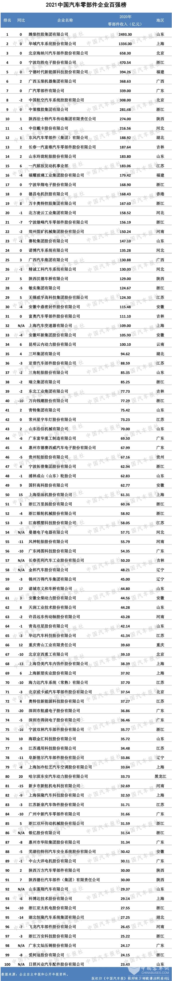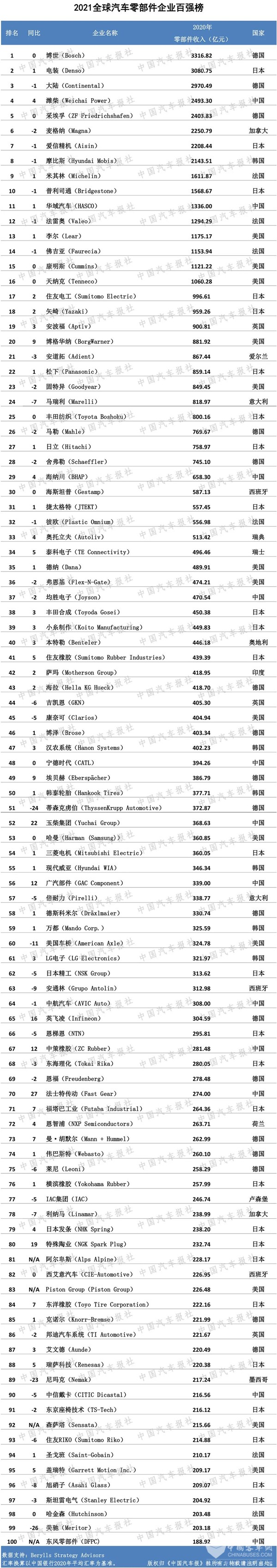 12家中国企业入围全球榜单! 2021汽车零部件企业“双百强”出炉(附榜单)