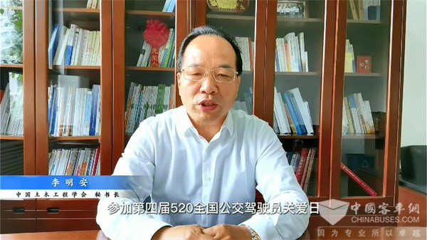 仪式上,中国土木工程学会秘书长李明安、中国土木工程学会城市公共交通分会理事长张必伟分别通过视频致辞,向关心公交驾驶员的社会各界朋友表示衷心的感谢,高度赞赏了广大公交驾驶员努力践行保障市民安全出行服务的崇高使命,在疫情防控期间以高度的责任感和使命感,克服困难、甘于奉献、牢筑防线,为乘客提供健康安全的乘车环境。同时,倡导全社会共同关心关爱公交驾驶员,优化公交驾驶员的从业环境,形成共同理解、尊重公交驾驶员的良好风尚,希望更多的公交企业能参与到520公交驾驶员关爱日活动中来,稳步提升公交驾驶员福利,营造和谐、文明、友爱的公交出行氛围。