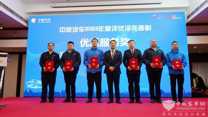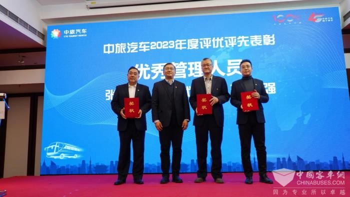 之后还公布了“第一届“中汽杯”驾驶员技能竞赛的获奖名单,并对获得中旅汽车2023年度先进集体、优秀管理人员、优秀员工和优质服务奖的人员进行了表彰。