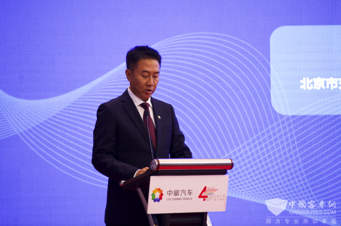 会上,北京市交通委员会朝阳运输管理分局副局长杨效辉首先代表行业对中旅汽车公司成立四十周年表示祝贺,并对公司一直以来在行业内强化安全生产和依法依规运营、持续保持高品质服务方面作出的突出成绩给予了充分肯定。随后中国旅游车船协会秘书长宋磊、中国国际航空股份有限公司综合保障部地面运输中心高级经理王春涛分别致辞,送上对中旅汽车四十周年的美好祝福,并畅谈了与中旅汽车数十年来的合作感受,对表达了今后继续与中旅汽车保持精诚合作的强烈愿望。