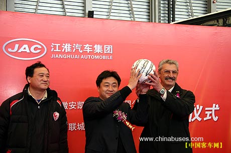 3月29日,是中国客车与中国足球值得纪念的日子。安徽安凯汽车股份有限公司与上海联城俱乐部,在国际会展中心联合举行新车交接仪式,这是安凯公司与中国足球再次联结姻缘。