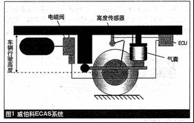 随着人们对车辆乘坐舒适性要求的提高和我国客车悬架技术的发展,空气悬架在客车上的应用日益广泛。传统的空气悬架控制模式是采用机械高度阀,即通过高度阀阀门的开启调节对气囊的充放气,从而保持车辆恒定的行驶高度。随着系统应用的推广和车辆控制技术的发展,电子控制逐渐取代传统的机械控制电子控制系统不仅提高了操作的舒适性和反应的灵敏度,而且可以附加很多辅助功能。威伯科汽车控制系统有限公司早在1986年就开始了电子控制空气悬架系统ECAS(electroni-controlled air suspension)的开发和应用,它是世界上最为先进并且应用最为广泛的电控空气悬架控制系统。