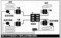 电控单元(ECU)通常安装在驾驶室或者电气仓内,可实现不同高度值的管理和储存,控制包括正常高度在内的多个车辆高度,ECU负责与诊断工具进行数据交换,同时监测系统所有部件的操作,检测并储存系统故障。