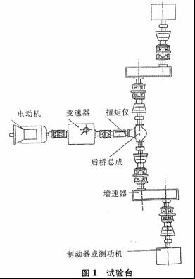 a.支承起后桥并将其固定在台架的基座上。然后,通过在被试桥的2个轮毂上施加一个制动扭矩使输入扭矩轴转动。