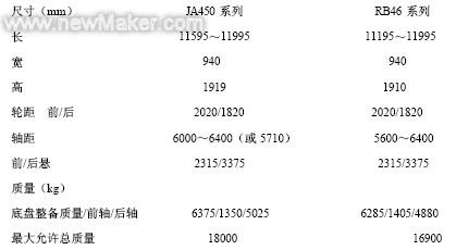 动力性 底盘动力强劲,扭矩达1323 N m/1200 r/min,功率达235Kw(JA450 系列)和扭矩达1079N m/1300 r/min,功率达213kW(RB46 系列)。足够的动力储备系数确保了车辆在全天候条件下运行。