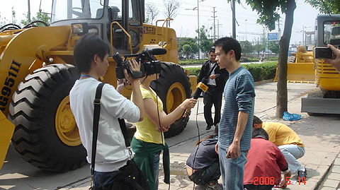 出征前,成都电视台新闻综合频道的记者对厦工四川办事处李长明主任进行采访 |
