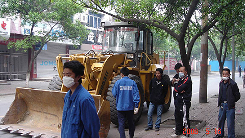 今天是5.12地震的第4天了,是生命的极限,对埋在地下的人是极大的考验,抢救工作更为迫切!我们维修人员上午赶赴工地,为工作了一夜的装载机进行检修。
