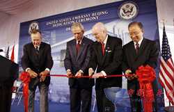 8月8日上午,专程前来参加奥运会开幕式的美国现任和前任总统布什父子出席了大使馆新馆揭幕剪彩仪式。中国美国商会副主席、康明斯东亚区总裁华金声(John Watkins)作为在华美国商界代表应邀参加了开幕仪式。