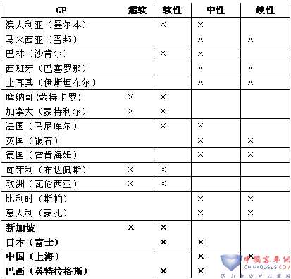 而本赛季最后一站巴西站将不同于上一赛季,今年将使用中性和软性配方轮胎,2007年使用的是软性和超软性配方。