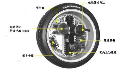 米其林主动车轮为道路交通开启了一个新的时代。汽车的道路、安全、节能和环保性能都达到了前所未有的水平。这是因为,在车轮中集成了一个小型的牵引引擎和一个电子悬挂系统。米其林公司开发的这些技术让人们有机会重新审视汽车的整个概念。