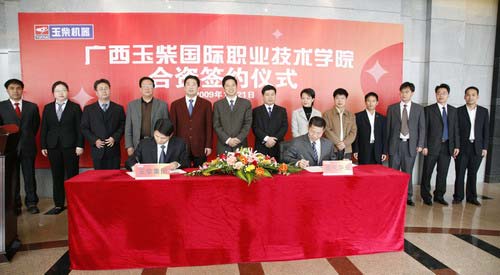 广西玉柴国际职业技术学院是由广西玉柴机器集团有限公司与浩天华业(北京)投资有限公司共同投资的高等职业学院。此项目计划投资3.5亿元,将立足玉柴集团,服务两广及西南各省区,面向东南亚,培养高等职业教育专科层次的技术型、应用型、技能型高级专门人才。院系及专业设置构想突出服务玉柴集团企业内部需求,融入北部湾经济区经济特色,设置机电工程系、建筑工程系、信息系、工商管理系、旅游管理系、艺术设计系、外国语系等七个院系,四十多个专业。