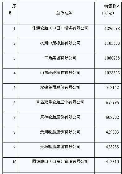 根据[2009]10号文通知精神,中国橡胶工业协会组织有关专家对轮胎贸易销售额前十名企业进行了初评,在广泛征求行业意见且进一步核实的基础上,特决定如下: