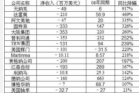 09年一季度全球零部件巨头利润概览