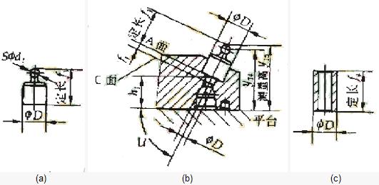 喷油孔D1的深度f1用如图3c所示的专用定长检套和深度尺测量。专用定长检套插入清理干净的喷油孔D1内,用深度尺测量C面至专用定长检套端面间的距离,深度尺的读数F5应为