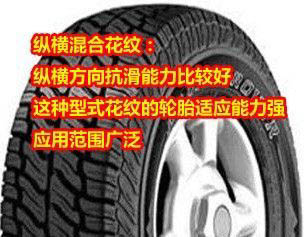 普通花纹适合于在硬路面上使用。它分为横向花纹、纵向花纹和纵横混合花纹。