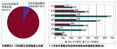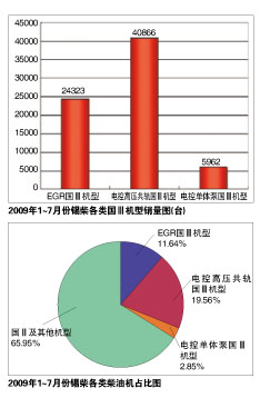 中国重汽电控高压共轨柴油机采用的是电装共轨系统,整机价格比EGR机型要贵9000元。由统计数字可以看出,年初时,由于重型机不景气,杭发的总产量较小,国Ⅲ机型与国Ⅱ机型的的销量比较接近,但在3月份之后,国Ⅲ柴油机的销量大大超过国Ⅱ柴油机。