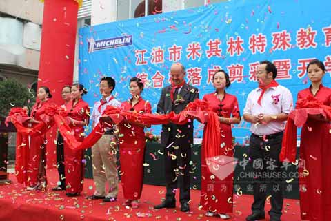 2009年9月2日,在5﹒12汶川地震中被部分摧毁的江油市特殊教育学校迎来了落成暨开学典礼, 60多位学生在经历了478个日日夜夜的等待后,终于可以回到明亮的教室,开始了新的学习和生活。随着该校的落成开学,作为该校灾后重建的捐资者,米其林公司及其全体员工终于进一步实现了为灾区人民献爱心的愿望。
