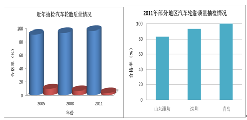 近年来我国汽车轮胎产品质量总体呈现良性上升趋势,但上升幅度一般。2011年度抽检汽车轮胎的质量合格率在95%以上,质量合格率较高。我国各地区汽车轮胎质量存在一定的差异。这从某种程度上说明了目前市场流通的汽车轮胎质量参差不齐,消费者需购买品牌信誉高的大、中型企业生产的产品,这样才能得到质量保证。