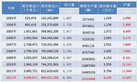 “2013中国铝合金轮毂行业后装市场经营高峰论坛”日前在广州举行。会上,中国汽车工业协会车轮委员会副秘书长王孝东发布了近十年中国铝车轮产量及其区域分布情况、铝车轮进出口数据等,并预测了2013年铝车轮的发展形势。