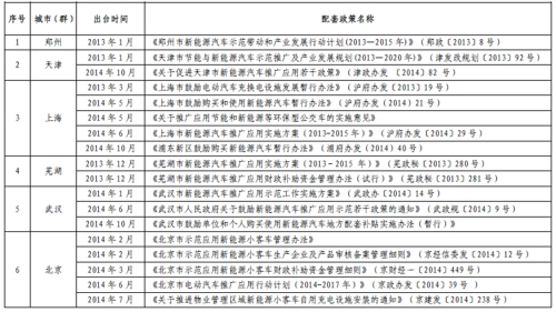 截至2014年10月底,有30个城市(群)65个城市出台了新能源汽车推广应用配套政策措施。