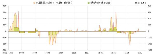 在“双电源”技术的作用下,利用超级电容大电流充放能力,对电池消峰填谷,降低电池充放电频率,实现电池最大充放电电流小于1.5C(320V,50AH配置),降低电池SOC深充深放概率,电池寿命同比延长一倍;与此同时,利用电池高比能,最大限度回收制动能量,弥补电容能量不足问题。