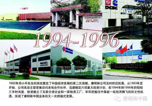 得益于许可证生产所建立的理解与互信,康明斯与合作伙伴的深化合作也紧锣密鼓的展开,1994年到1996年的短短三年时间里,康明斯与中国合作伙伴携手建立了五家合资企业和一家独资工厂,涵盖涡轮增压器和滤清器等关键零部件,以及中重型到大马力发动机平台和发电机产品,实现了康明斯中国业务的又一次跨越式发展。