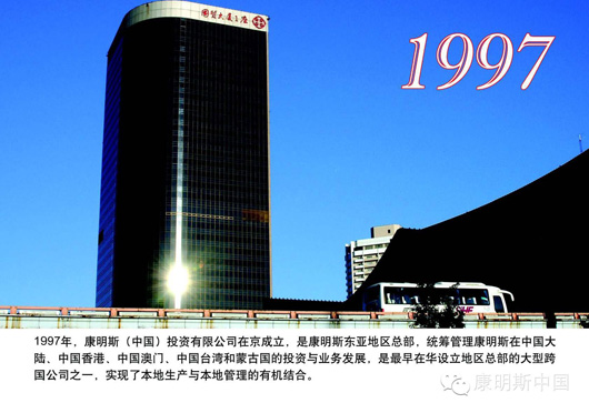 1997年,康明斯(中国)投资有限公司在京成立,统筹管理康明斯在华投资和业务发展,实现了本地生产与本地管理的有机结合。