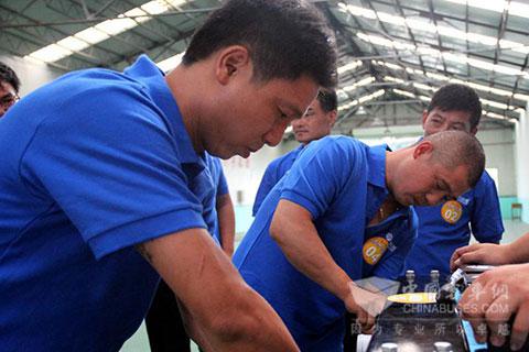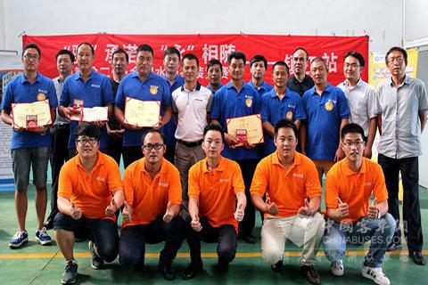 江苏省镇江江天汽运集团有限责任公司汽车修理分公司(下文简称"江天汽修")是驿力科技"驿"诺"永"相随主题活动--全国水箱换装竞赛走过的第7站。在江天汽修的大力支持下,2015年9月2日,镇江赛区活动如期举行并圆满结束。来自江天汽修的五支代表队参加了水箱换装竞赛,他们展示了良好的精神面貌和维修操作技能。最终,鲁秀辉和王中芳组合以2分59秒10的成绩获得镇江赛区第一名,王永生和丁召根组合以3分04秒66的成绩获得第二名,丁鹏飞和武书成组合以3分11秒41的成绩获得第三名。