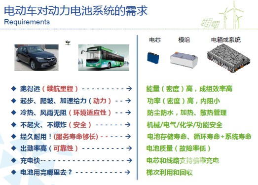 在胡建国和宁德时代的客车电池研发团队看来,新能源汽车动力电池的需求主要包括以下几点:续航里程、动力性能、耐冷耐热、安全长寿、快充长效,以及回收利用,基于此,宁德时代给出了相应的解决方法: