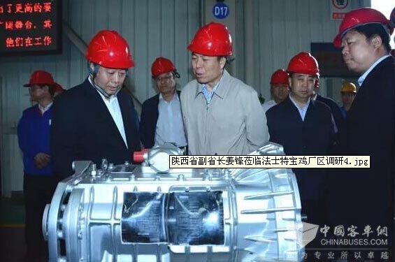 2016年6月1日下午,陕西省副省长姜锋在宝鸡市市委常委、副市长方红卫等领导的陪同下,莅临法士特宝鸡厂区调研工业发展情况。法士特集团公司董事长严鉴铂、纪委书记李研对姜锋副省长的莅临表示欢迎,并陪同深入公司铸造车间、压铸车间和6DS客车变速器壳体生产线、装配生产线调研。