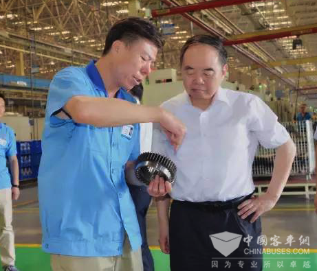 在轮边减速机和纯电动动力传动系统展台前,周济院长详细询问了新能源产品研发生产情况。严鉴铂董事长汇报说,轮边减速机是法士特专门为大型城市公交、高端中型客车量身打造的产品。与传统产品相比,具有结构简单、轻量小巧、传动效率高等突出优势,目前已配套多个城市地区的公交线路及商用车,市场发展前景广阔。