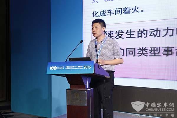 今天我的汇报从三个方面跟大家分享,首先从动力电池的火灾风险、充电安全和电动汽车的救援。动力电池方面,中国汽车技术研究中心标准所总工程师周荣已经从标准方面做了详细介绍,我想从另外一个方面,动力电池生产环节方面,谈谈动力电池的火灾风险。