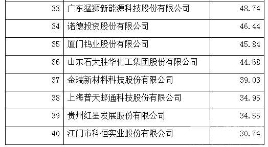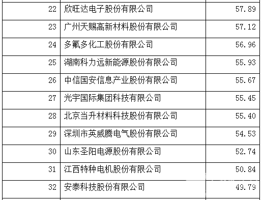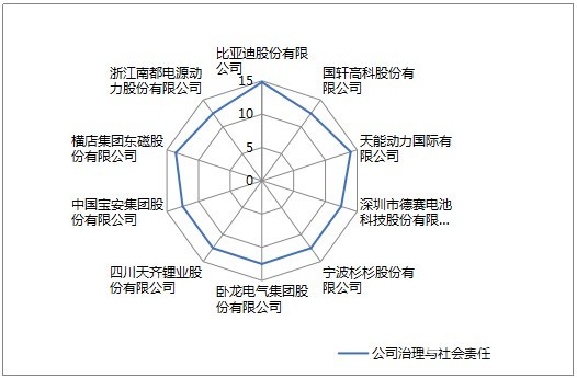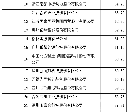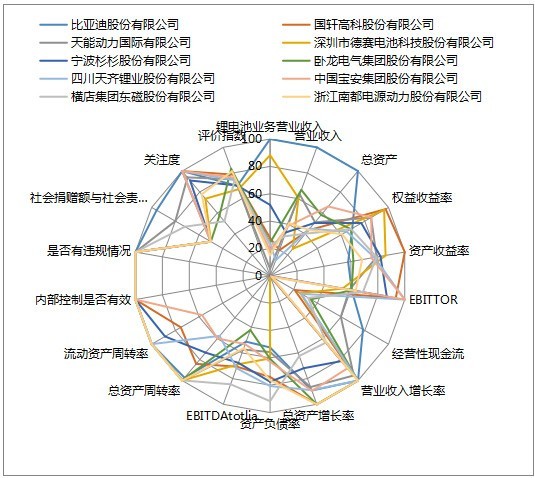 在前10的锂电池企业中,除了第一名的比亚迪由于规模优势而分数较高以外, 其他企业之间的差距并不显著。