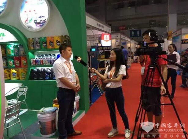 在8号的会议现场,龙蟠润滑油南方大区总监程宇先生现场接受重庆电视台的采访,讲述民族品牌如何挑战洋品牌,并重点介绍了四季通连锁快速换油中心、龙蟠智尊养护&阿里车码头两大汽车后市场服务项目。