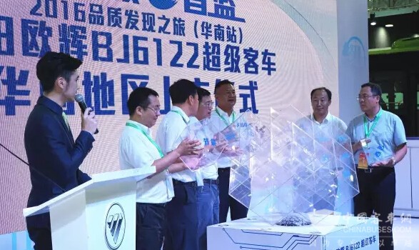 9月12日上午10:00,在客运企业代表和媒体的共同见证下,福田欧辉以“全天候E智蓝”为主题,隆重举行“2016品质发现之旅系列活动”华南站启动仪式,引起行业广泛关注的福田欧辉新一代“超级客车” BJ6122在华南地区正式上市发布。