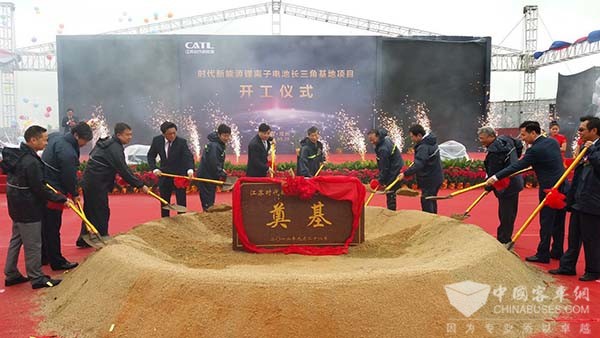 常州市市长费高云,溧阳市委书记蒋锋,中国工程院陈立泉院士,宁德时代创始人曾毓群等共同为项目培土。宁德时代大客户及供应商代表出席了本次活动。