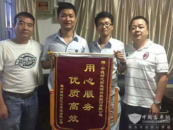 福州康驰新巴士责任有限公司是福建省内第一批体验纯电动客车使用的客户。客户初次体验,因不熟悉新能源车的使用特点,导致了很多问题。为确保用户能够顺利使用电动巴士,宁德时代售后驻外服务人员与整车厂售后服务人员在现场24小时待命,经常半夜出勤至现场协调、指导和解决问题,风雨无阻。该状态持续了一个多月,售后驻外技术人员平均每天睡眠时间均不超过6小时。